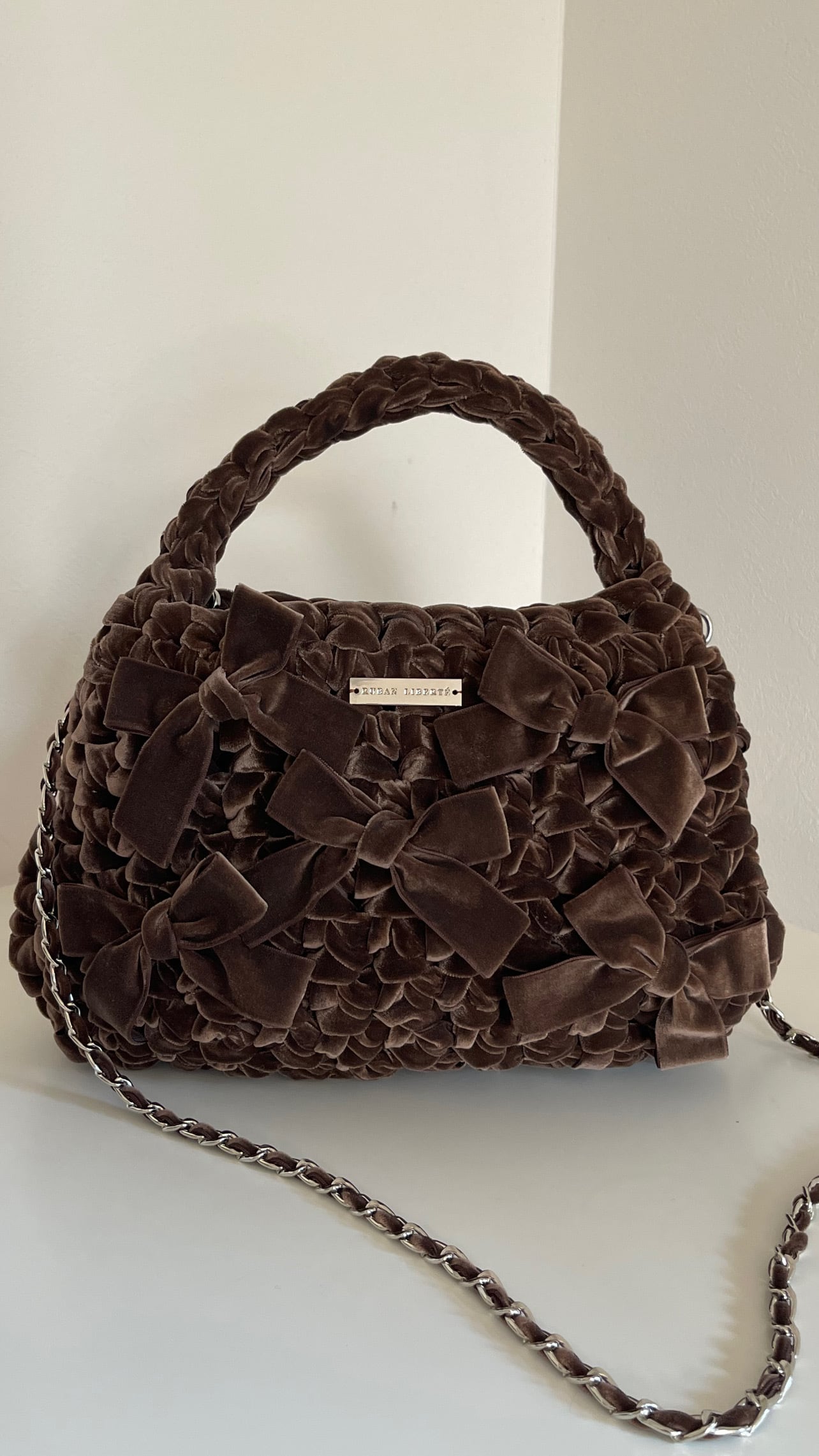高級感溢れるベロアリボンを使用し 1点1点手編みでお作りしています。