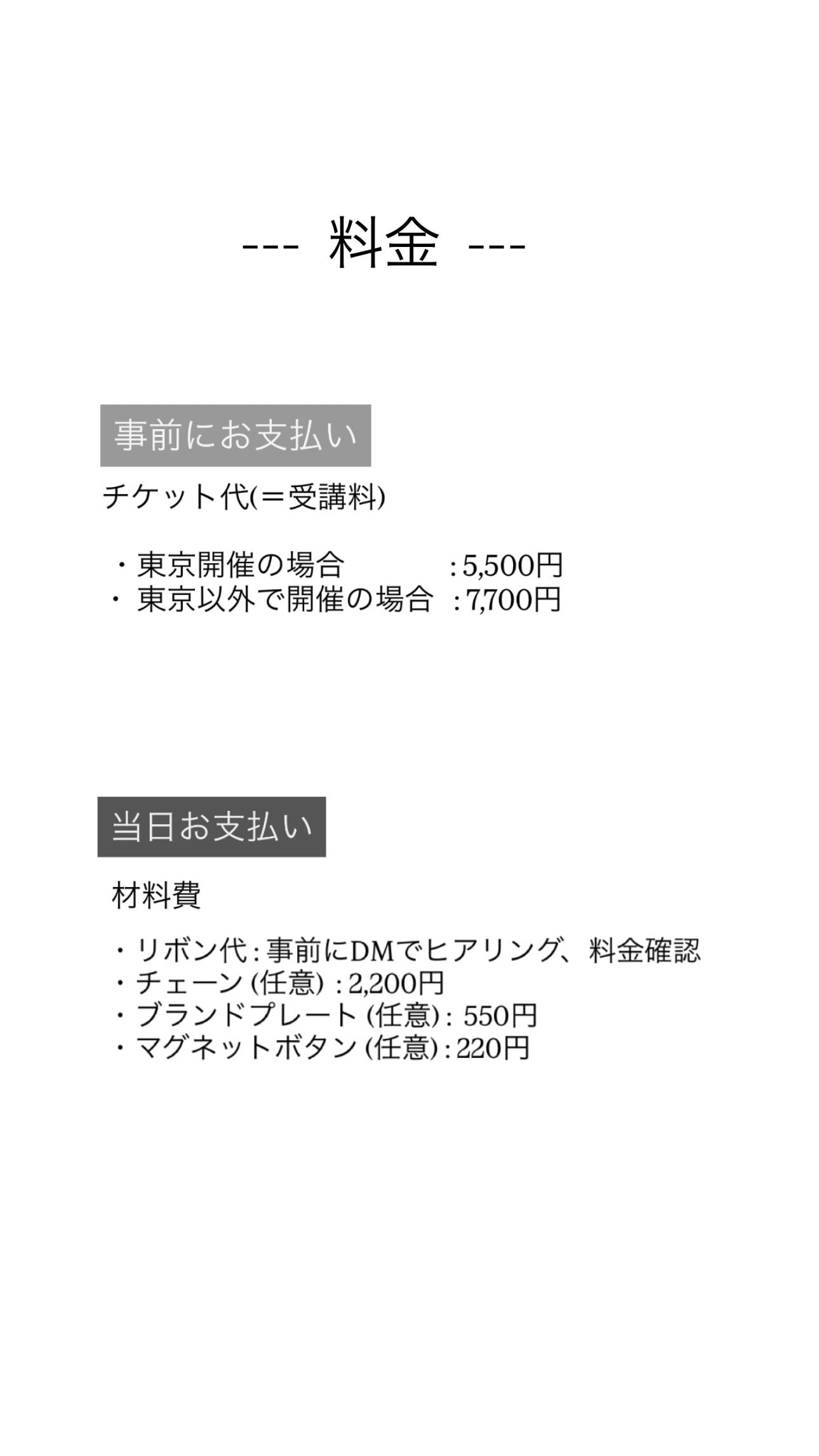 【料金】参加費5,500円+材料費
